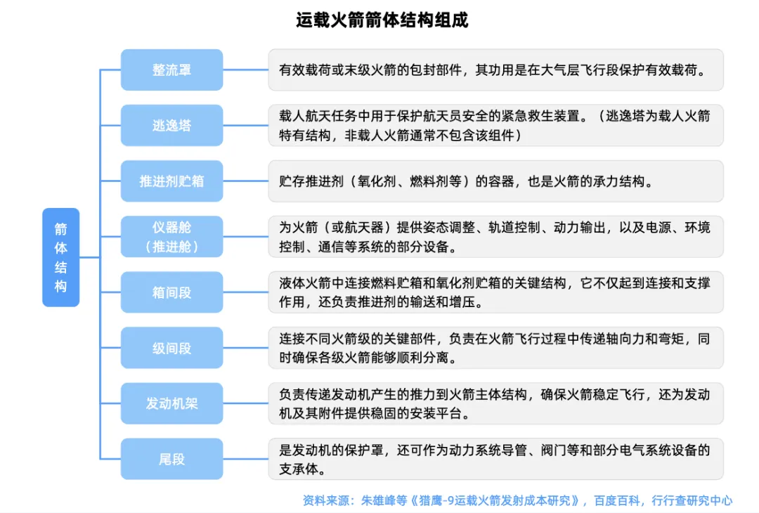 整流罩:占火箭总成本约10%,碳纤维复合材料是主流。例如,爱思达航天为多家商业火箭企业提供整流罩,光年探索通过木蒙皮整流罩技术将成本降至工业级水平。