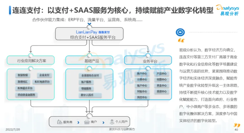 在数字产业化、产业数字化的推动下,布局支付+SAAS服务俨然已成第三方支付行业的共识。