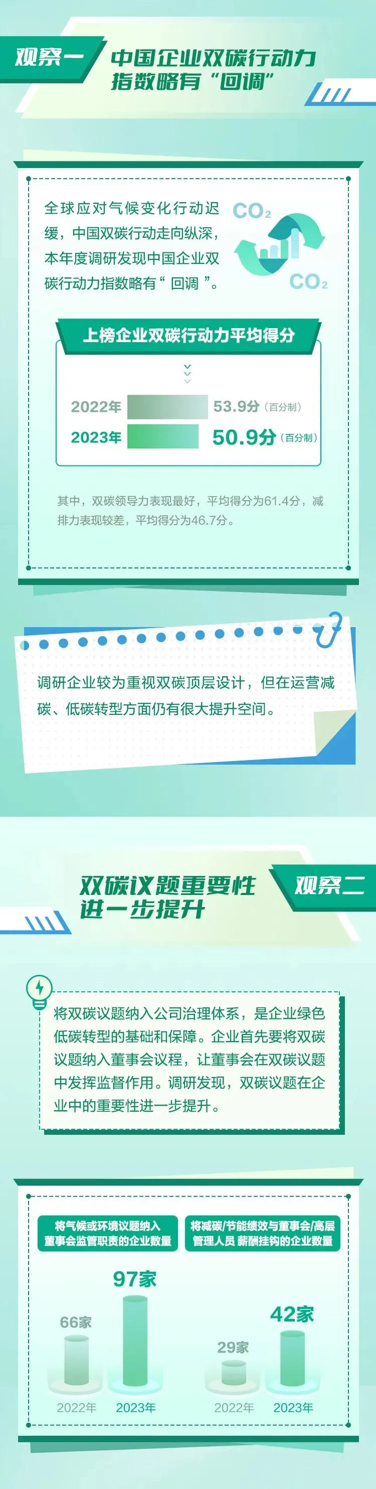 《中国企业双碳行动观察报告(2022-2023)》及《中国企业双碳行动力榜单2023》。