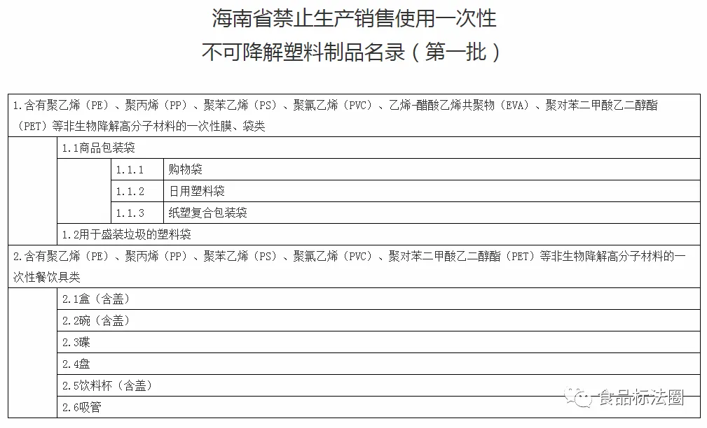 另外,3月20日,海南省生态环境厅关于发布《海南省禁止生产销售使用一次性不可降解塑料制品名录(第一批)》的公告中将一次性不可降解塑料袋、餐具2大类,10个小类的一次性不可降解塑料制品纳入禁塑范围,该目录同时列举了不可降解塑料的主要材质。