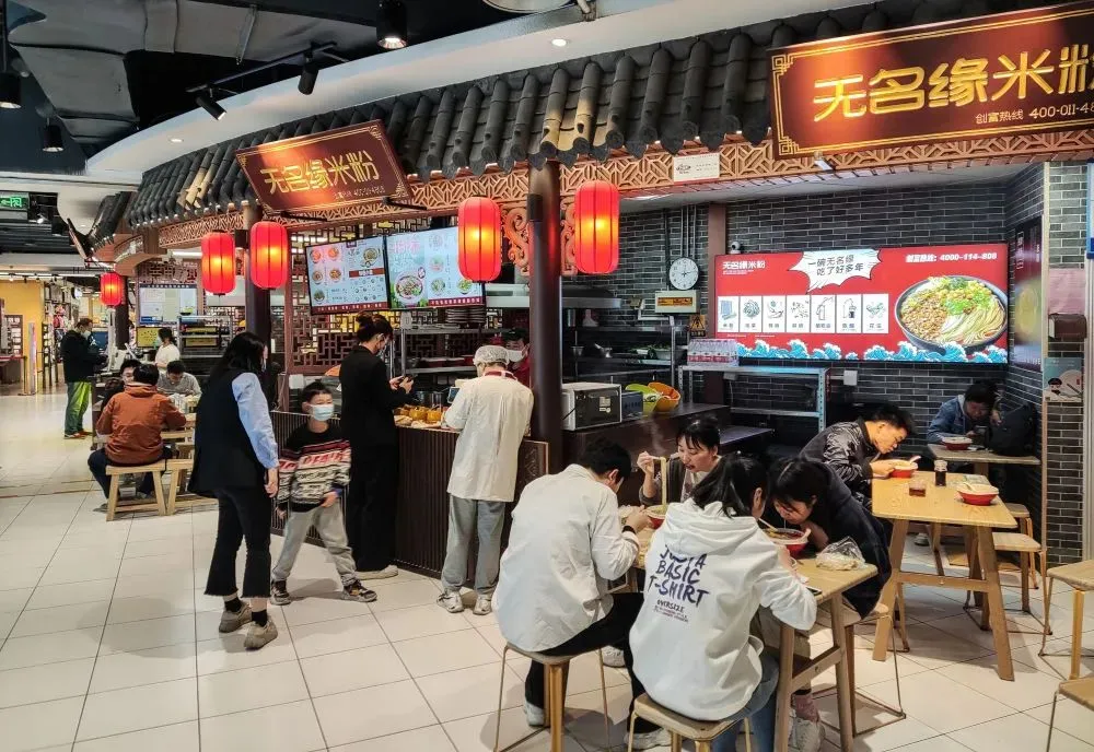 顾客在山东济南一家商场的餐饮区用餐(5月10日摄)。新华社记者 朱峥 摄