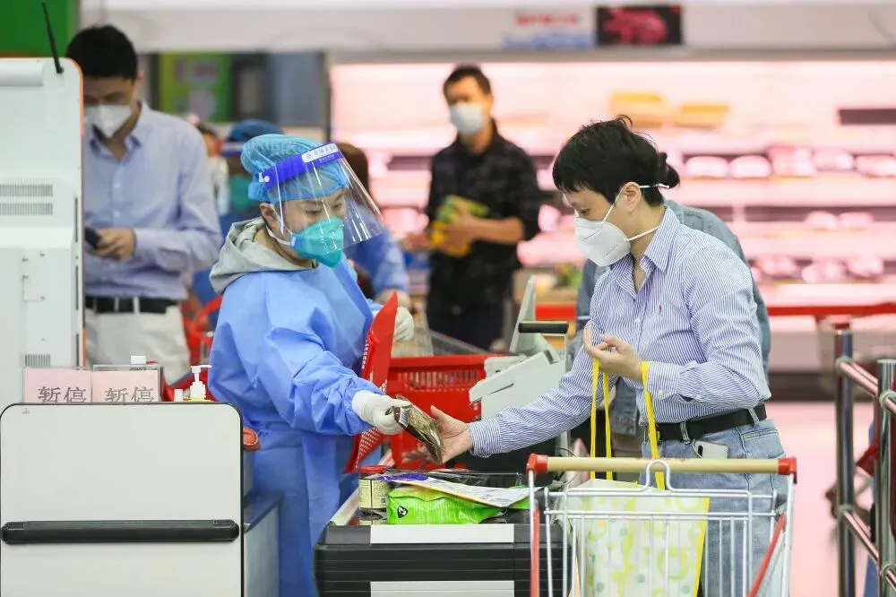 5月16日,市民在上海市徐汇区一家超市内购物。当日起,上海将分三阶段恢复正常生产生活秩序。新华社记者 丁汀 摄