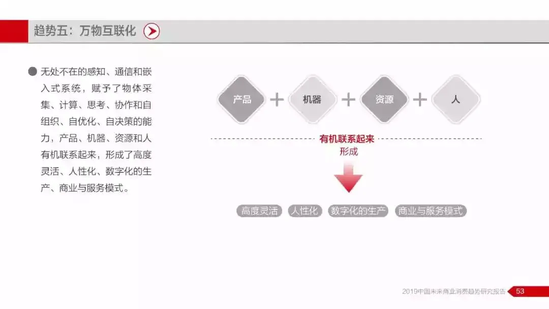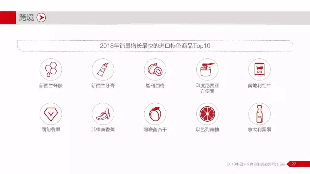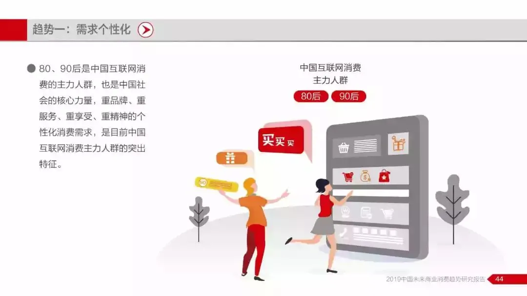 此外,报告也围绕目前中国互联网商业特点提炼得出四大关键词:大牌、智能、跨境以及消费升级。数据显示,越来越多消费者对品牌品质的关注度正在提升,智能手环、智能手表、智能家居等智能产品成为网购新宠,新西兰蜂胶、智利西梅、缅甸翡翠等商品则是最受国人喜爱的进口“爆款”,而越来越多数据显示,全民消费升级下的产品高端化、健康化、绿色化特征显现。另外,在综合综合互联网商业时代下的部分城市表现后,报告最终得出未来商业5大发展趋势,即需求个性化、场景多元化、零售无界化、商品数字化以及万物互联化。