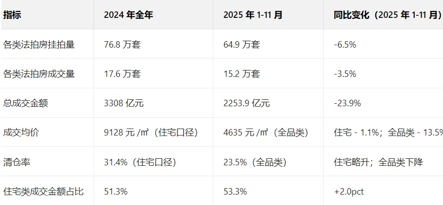 供给端:司法执行节奏放缓,银行直供房分流部分法拍供给,商业地产挂拍占比提升但去化难。 需求端:机构化加速,个人投资者更理性,核心城市优质资产溢价,非核心区域折价加剧。 政策端:信息披露规范、法拍贷落地等提升市场透明度,但三四线城市执行效果滞后,影响清仓率与成交价格。