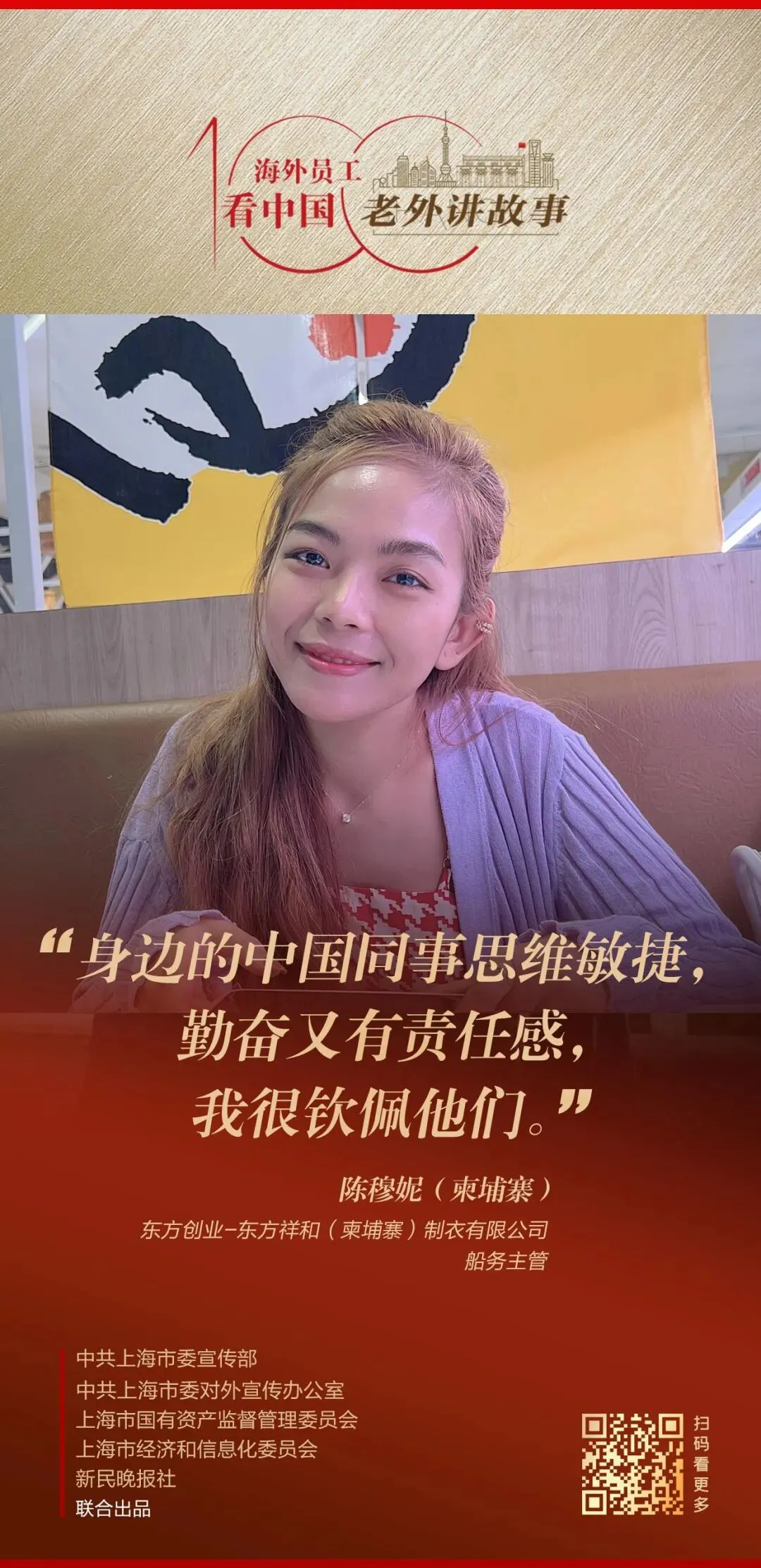 由中共上海市委宣传部、中共上海市委对外宣传办公室、上海市国有资产监督管理委员会、上海市经济和信息化委员会、新民晚报社联合出品的《老外讲故事•海外员工看中国》百集融媒体产品最新推出56-58期内容,东方创业—东方祥和(柬埔寨)制衣有限公司船务主管陈穆妮、中国宝武宝钢股份宝钢新加坡有限公司作业长许勉贤、VCP药品股份公司(越南) 陈文刚总经理讲述自己身处中国企业、观察中国的真实感受。详见↓