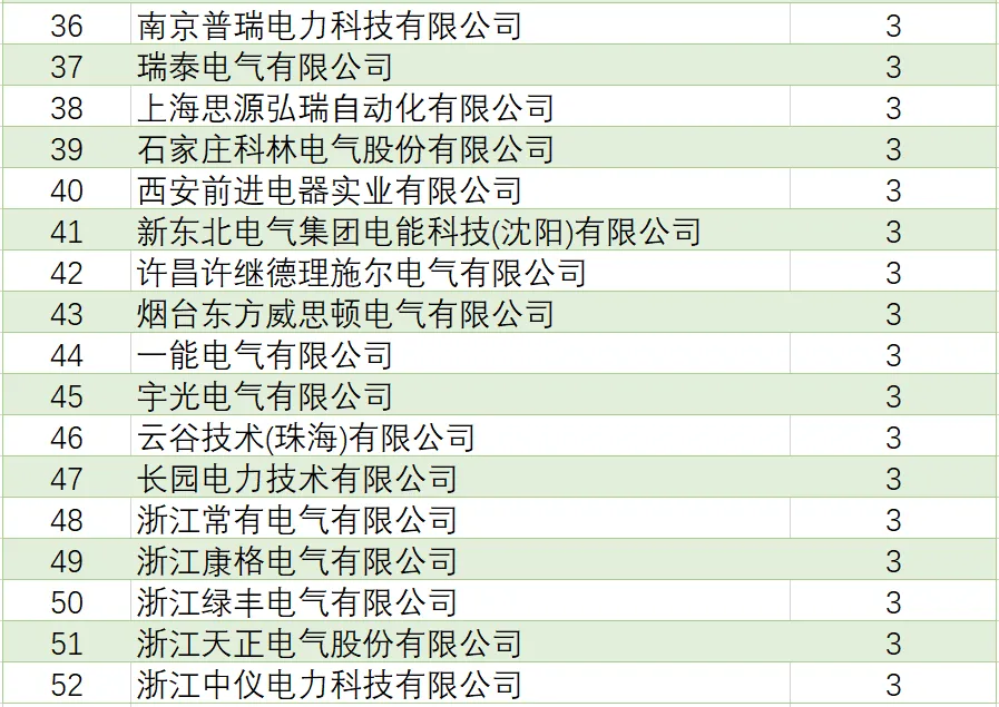 表4 国网柱上断路器产品中标企业中标项目单位数(超过3个部分)