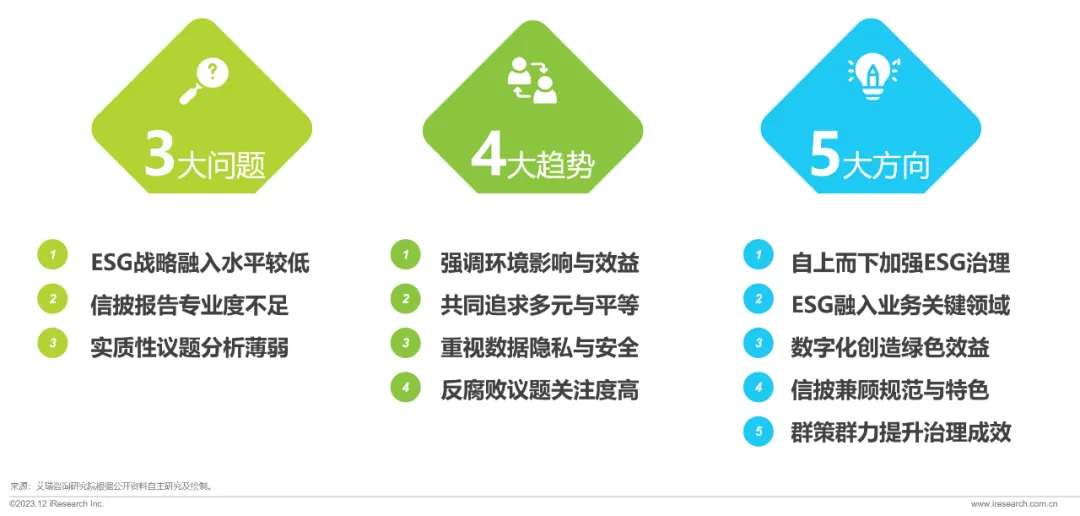 艾瑞咨询研究院联合中国商业联合会,发布《2023年中国商贸零售企业ESG观察报告》,探讨1)商贸零售企业为什么要关注ESG;2)行业践行ESG的现状;3)如何提升ESG表现。通过解析商贸零售企业的ESG专项报告,总结目前ESG专项报告披露情况所反映的问题、趋势和方向,从企业ESG管理和评级提升两个角度提出改善建议。希望帮助推动中国商贸零售全行业加强ESG意识,提升行业ESG信息披露质量及评级,帮助企业在ESG理念指导下在新经济周期中提质增效、实现高质量发展。