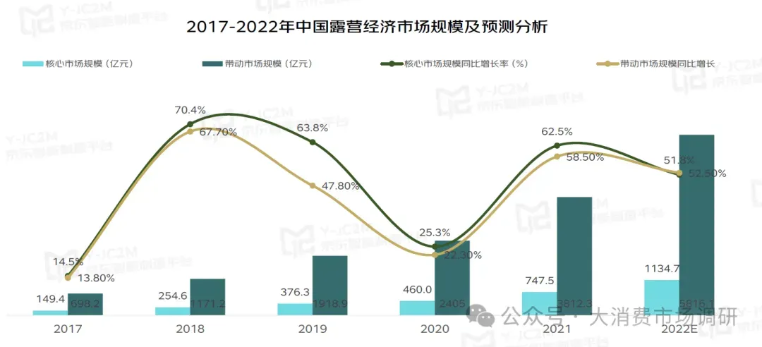 随着露营相关企业注册量稳步增长以及露营营地市场规模扩大,“露营经济”拟持续升温,预计2022年达到1134亿元人民币;