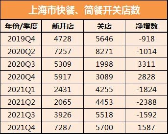 2021Q4上海快餐简餐新开店7287家
