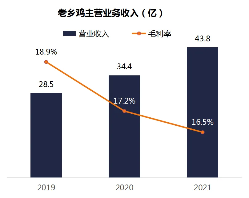 2021年老乡鸡主营业务收入43.8亿,近两年复合年均增长率24%