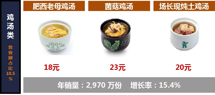 4.老乡鸡产品结构:鸡汤类、特色菜品、主食、饮料
