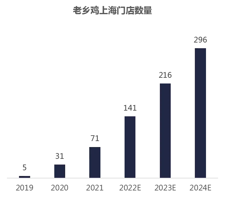 2021年,上海共有门店 71家,预计2024年,上海门店达到296家
