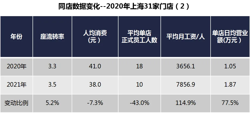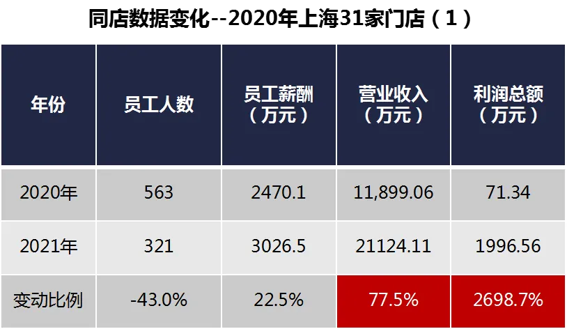 (表中营业收入、利润总额为门店端营业收入、利润总额;员工人数为期末门店正式员工人数,员工薪酬为当期正式员工实际发放薪酬;租金为固定租金、保底和提成取其高两种模式,计算平均租金按照保底租金计算。)