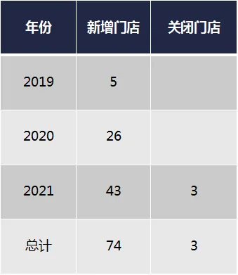 2020年共有19家利润总额为负数,皆为2020年新开店铺,其中17家在2021年扭亏为盈。