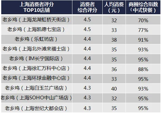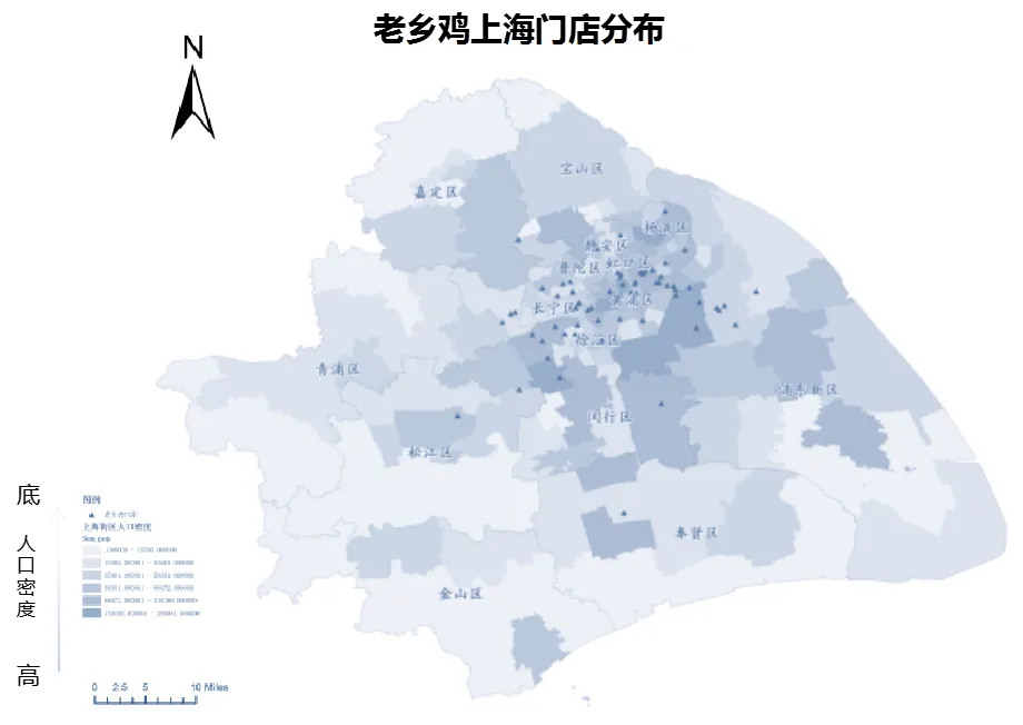 老乡鸡在上海的门店在市区较为集中,人口密度高