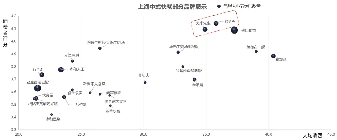 大米先生人均消费34.9,消费者综合评价4.09,老乡鸡人均消费35.8,消费者综合评价4.14。