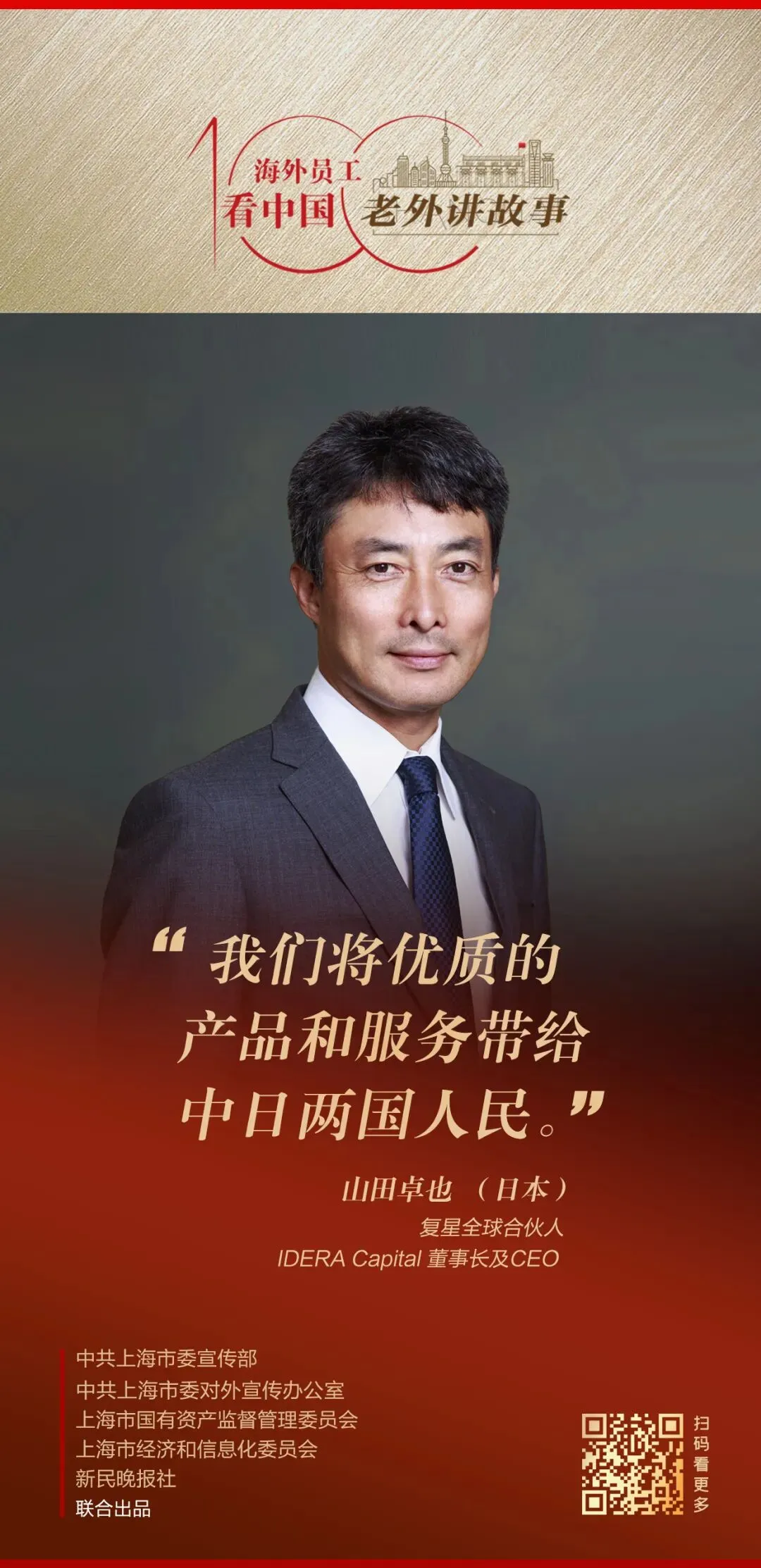 由中共上海市委宣传部、中共上海市委对外宣传办公室、上海市国有资产监督管理委员会、上海市经济和信息化委员会、新民晚报社联合出品的《老外讲故事•海外员工看中国》百集融媒体产品最新推出84-86期内容,中国船舶集团国际工程(孟加拉)有限公司现场工程师、翻译阿里福、上海港湾集团印尼子公司董事总经理黄正义、复星全球合伙人IDERA Capital董事长及CEO山田卓也讲述自己身处中国企业、观察中国的真实感受。详见↓