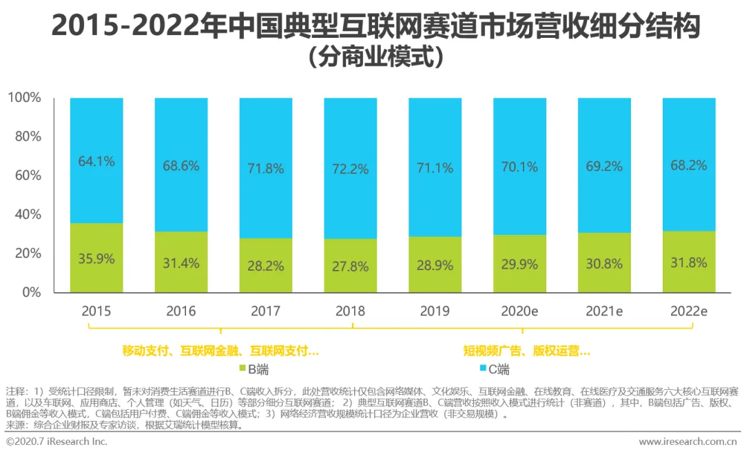 典型互联网赛道收入结构向B端转变