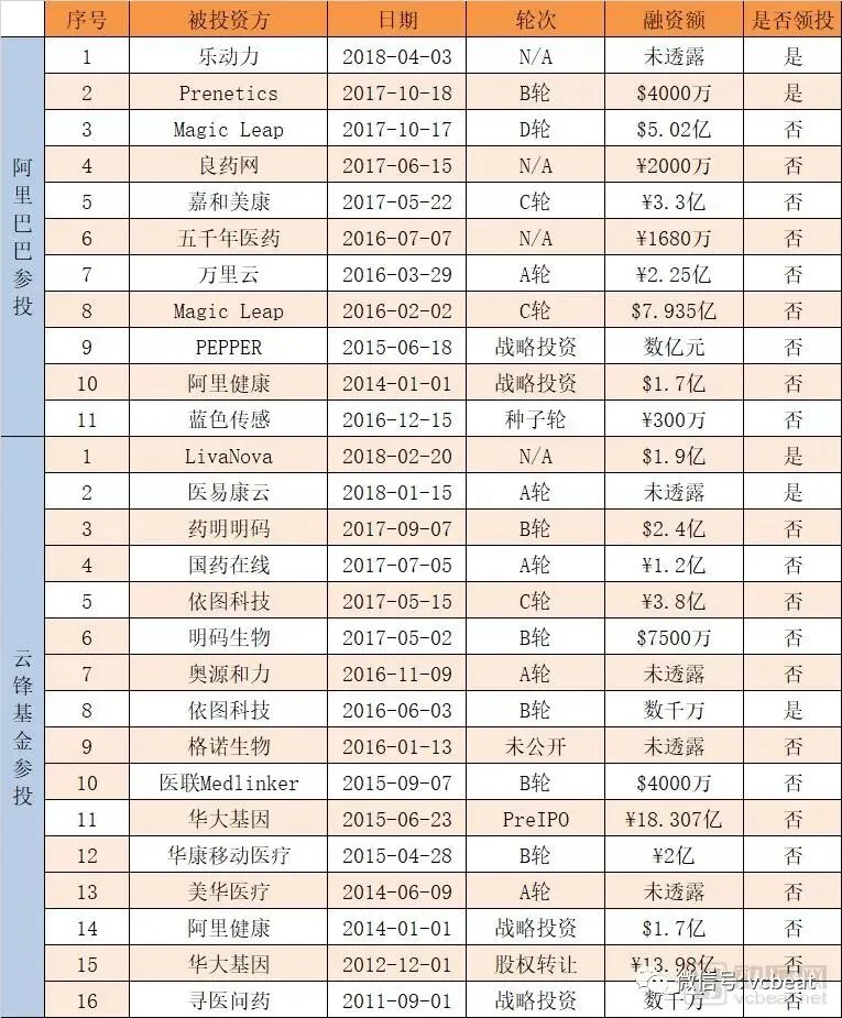 截至目前,阿里及云锋基金共参投了27个医疗健康项目,其所布局的赛道,同样非常丰富,包括医药电商、医疗AI、寻医问诊、生物医药等领域。而自2010年云锋基金成立以来,在医疗健康领域的投资收购成绩亦颇为亮眼。