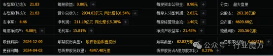 我们给予紫金矿业(601899.SH,最新价:17.51元)推荐评级,12个月内目标价为21.00元,与最新价17.51元相比,高3.49元,目标均价涨幅20%。评级理由主要包括:1)在财务表现方面,紫金矿业展现出了强劲的业绩增长态势;2)从业务结构上看,铜和金业务作为紫金矿业的核心盈利板块,得益于矿产金、铜和银的产量和价格双增长,实现了显著的利润提振;3)紫金矿业在2024年设定了积极的产量增长目标。