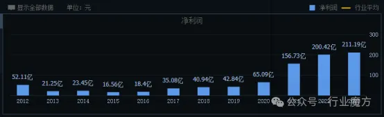2012-2023年,由于紫金矿业出色的内部经营管理能力,紫金矿业公司税后净利润增长幅度较大,从2012年的52.11亿元增长到2023年的211.19亿元,增加了305%。