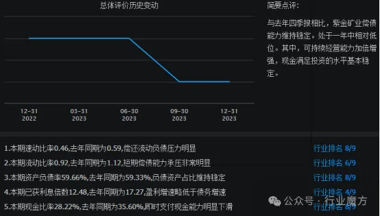 与2022年四季报相比,2023年四季报,紫金矿业偿债能力维持稳定。处于一年中相对低位。其中,可持续经营能力加倍增强,现金满足投资的水平基本稳定。