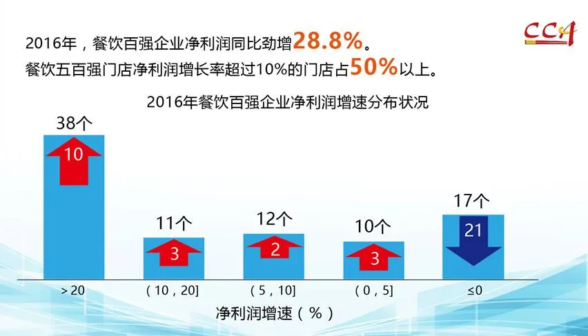 2016年,餐饮百强企业净利润同比劲增28.8%,平均净利润率4.7%,同比上升0.7个百分点;