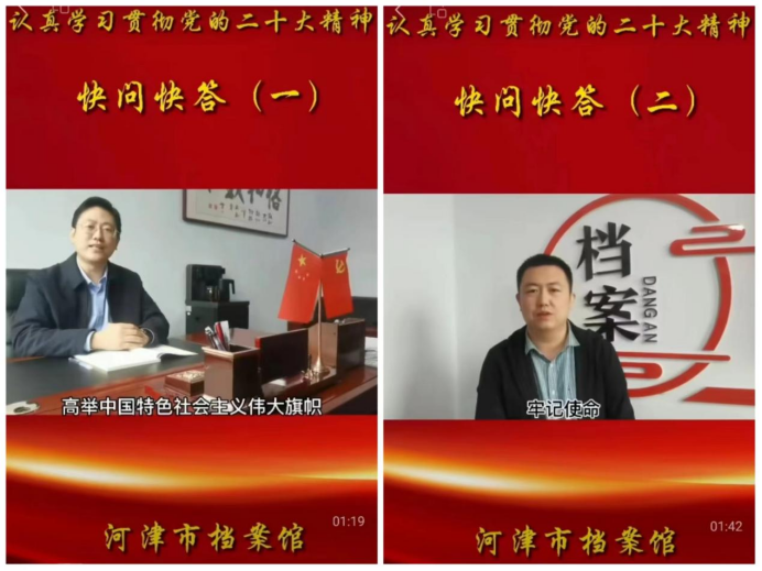 以红育人。开展了“用档案讲好党的故事、用档案记录时代发展”为主题的宣传活动;举办了“喜迎二十大 档案颂辉煌”主题展览;组织了“结伴兰台 与党同行”诗歌诵读活动;录制了两期二十大精神快问快答小视频,引导广大党员干部坚定理想信念,厚植爱国情怀,培养奋斗精神!