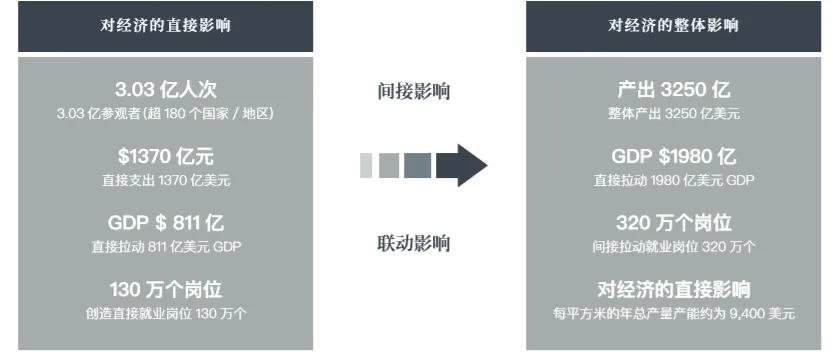 展览行业的发展,也将对上下游一系列行业带来不容小觑的影响。其中包括会展相关的直接经济影响;与供应链相关的经济影响;二次消费带动的经济影响,而这个带动效应比值将达到1:9。