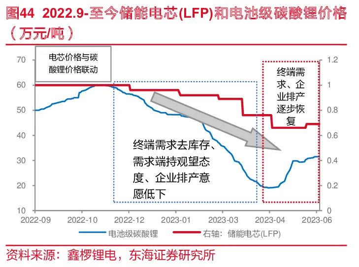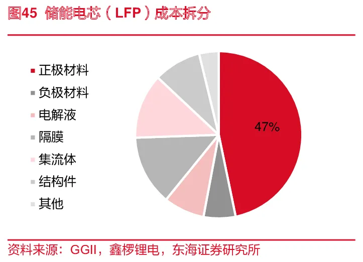当前的储能电芯成本呈下降趋势。2023年以来碳酸锂价格大幅下滑,带动电化学储能成本降低。基于当前国内储能用锂电池只能采取磷酸铁锂电池,我们对其进行成本测算,相关假设包括:正极材料、负极材料、隔膜、电解液、集流体、结构件及其他项目的单位价格,其中电池级碳酸锂2023年6月26日报价29.80万元/吨。