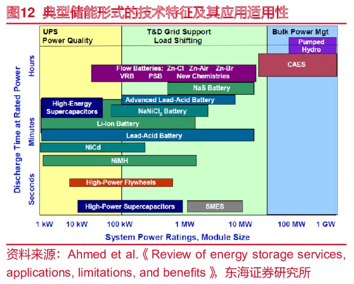 从当前时点来看,抽水储能是目前应用最为成熟的技术之一;储热技术则已经进入到规模化应用的阶段,目前我国火电灵活性改造已经普遍采用储热技术;锂离子电池储能近年来得到了广泛的飞速应用;而压缩空气和液流电池也逐渐开启商业化应用。