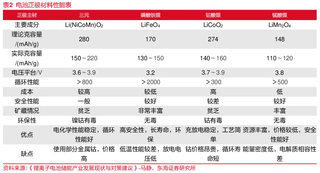 3)钴酸锂生产工艺简单和电化学性能稳定且能量密度较高,最先实现商业化,多应用于消费电子类场景中;但钴酸锂成本高,且安全性较低,环境友好性差,这些特性限制了其发展。