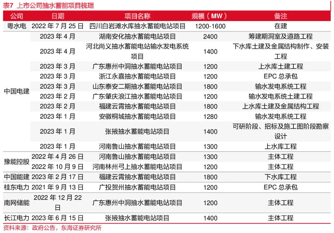 目前我国主要的抽水蓄能公司包括粤水电、中国电建、豫能控股、中国能建、桂东电力、南网储能、长江电力等。还有多项抽水蓄能项目正处于项目建设之中,项目规模大都在1200-1800MW。