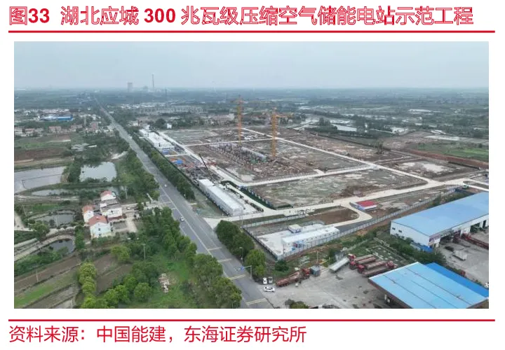 2023年5月15日,湖北省应城由中国能建数科集团主体投资、中南院总承包建设的300兆瓦级压缩空气储能电站示范工程完成主厂房基础出零米的重要里程碑节点。该项目充分利用了应城地区丰富的盐穴资源,将建设一台300MW/1500MWh压缩空气发电机组以及配套的储能发电生产区、辅助生产区及附属基础设施。一期工程建设周期为18个月,预计将于2024 年6月竣工并投入使用。该项目在单机功率、储能规模和转换效率方面均达到世界领先水平。