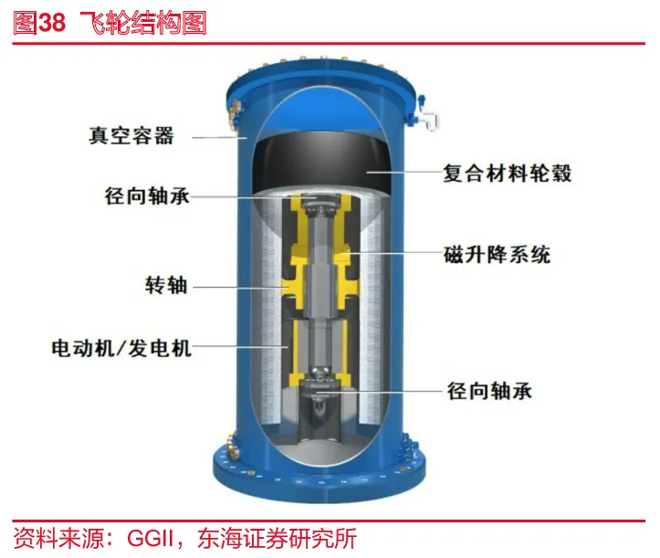 飞轮储能是一种将能量以旋转动能的形式储存于系统中的技术。其运作方式是通过加速转子(飞轮)至极高速度,当释放能量时,飞轮的旋转速度会降低,而在向系统中贮存能量时,飞轮的旋转速度则会升高。一般来说,飞轮系统使用电流来控制飞轮速度,其中高能的飞轮使用高强度碳纤维制成的转子,并通过磁悬浮轴承实现悬浮。这些转子在真空罩内的转速可达到20,000-50,000rpm,可以在几分钟内达到所需的速度。