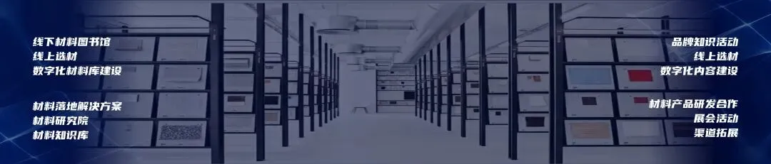 为材料企业提供产品研发;为设计工作室提供强大的产品资源支持,背后依托庞大的数据库和专家智库;为设计师的创意方案提供专业支持,解决项目落地和选材过程中的各类难题。