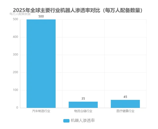 不同行业机器人渗透率的显著差异源于技术适配性、经济性与政策环境的综合作用。汽车行业的标准化生产环境(如固定节拍、结构化场景)为机器人应用提供了天然土壤,且单台机器人年均可创造约50万元产值,投资回收期仅2-3年。医疗行业则面临"非结构化场景+高安全要求"的双重挑战,手术机器人需应对人体组织的个体差异,康复机器人需处理复杂的人机交互,导致技术开发周期长达5-8年。从政策维度看,汽车行业享受智能制造补贴、税收优惠等产业政策支持,而医疗机器人则受限于严格的医疗器械审批流程,平均认证周期比工业机器人长3倍以上。这种行业分化格局预计将持续3-5年,直至协作机器人、AI 视觉等通用技术突破降低跨行业应用门槛。