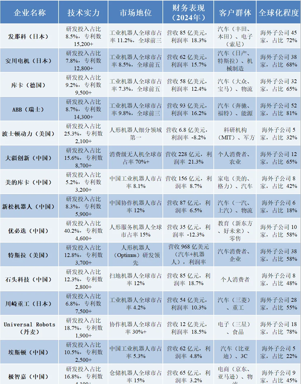 五、全球机器人企业核心竞争力对比分析