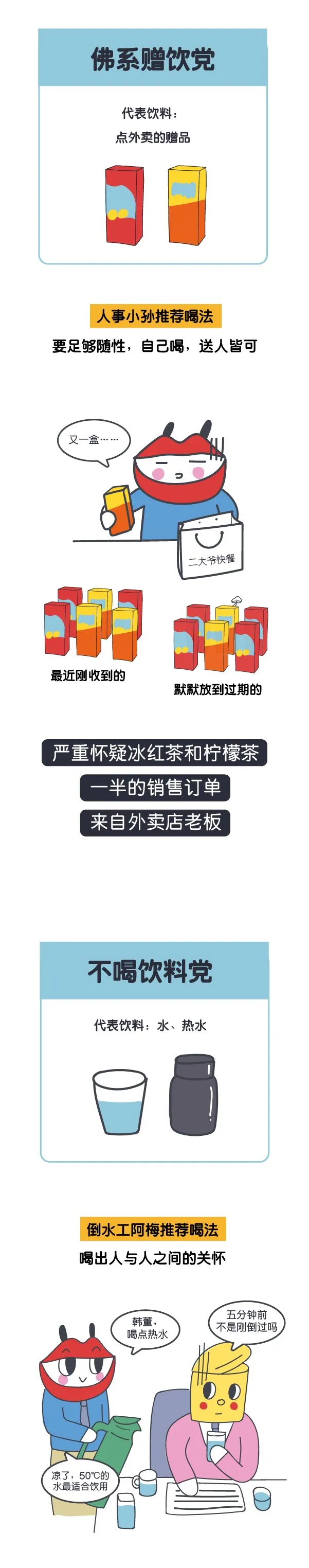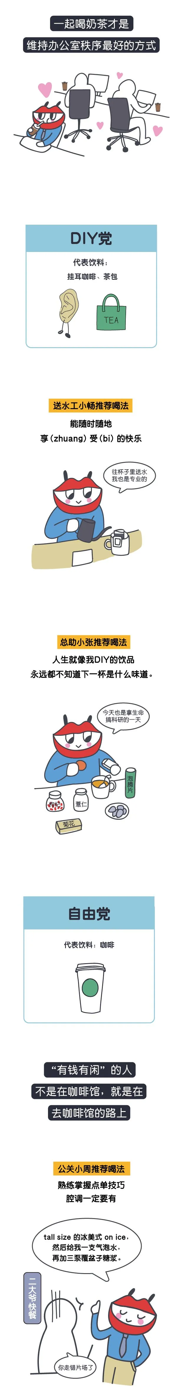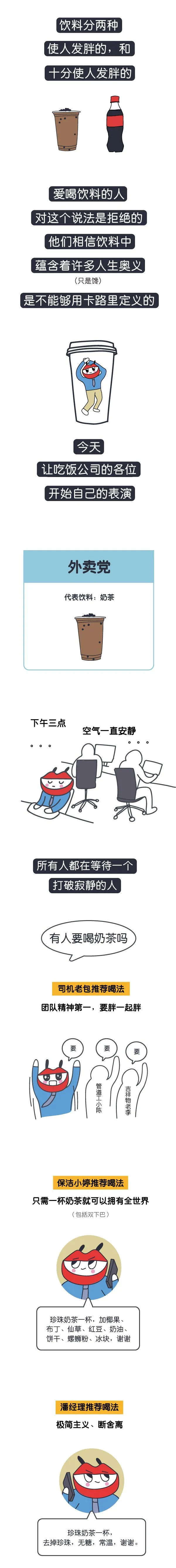 其实当中还有一些被剪掉的真实情节:倒水工阿梅和管道工小陈是只喝热水的无聊养生年轻人;人事小孙会一个人偷偷点奶茶;财务老原一年四季只喝冰饮;天天喊着减肥的程序猿老黄每天在办公司拒绝我们的奶茶拼单邀请,周末默默爆喝好几杯;保安小曲每天至少喝两杯咖啡,有时甚至睡觉之前还会来一杯。