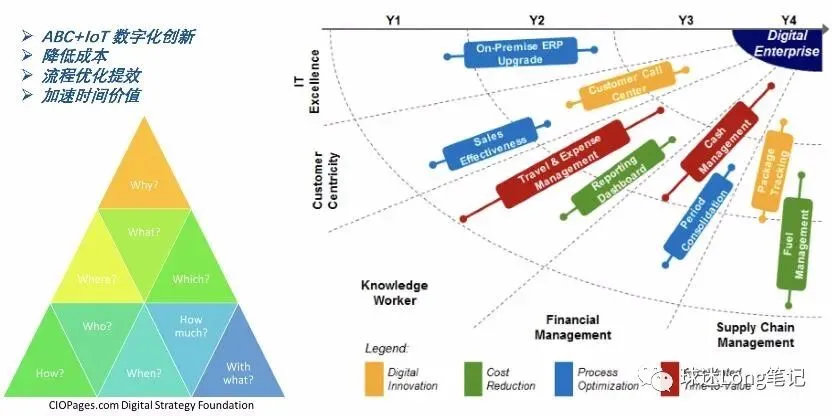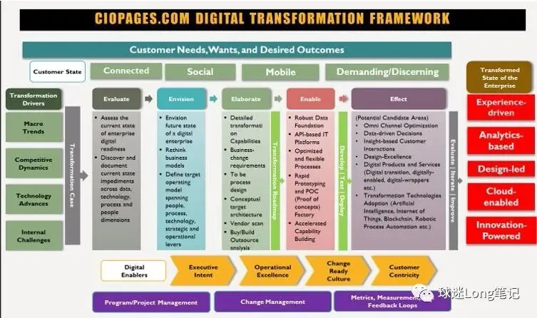 当然,并非上述框架可以在你们企业照搬照抄,每个企业所处的阶段也不一样。要由转型负责团队来定义转型的范围和重点,并将工作的实质封装在易于理解的框架中。