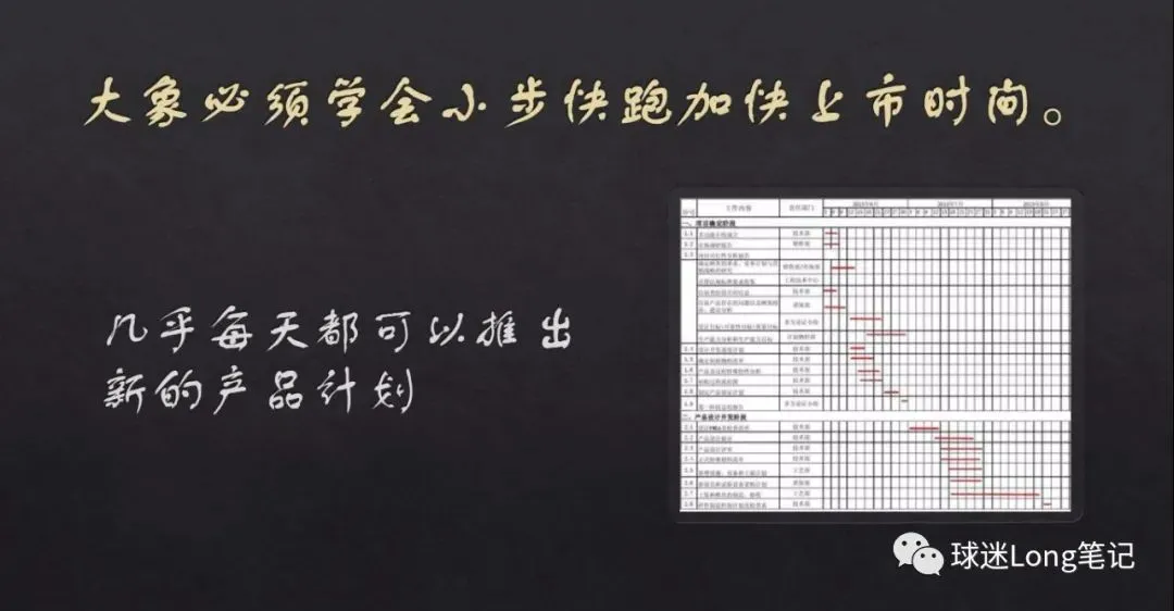 响应市场变化并更快地推出产品:许多互联网公司几乎每天都可以推出新的产品计划和新产品。而在大型企业中,典型的产品发布要花几个季度到几年的时间,大象必须学会小步快跑加快上市时间。