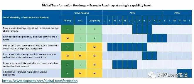 以下是单个数字化能力的数字转换路线图的示例视图。