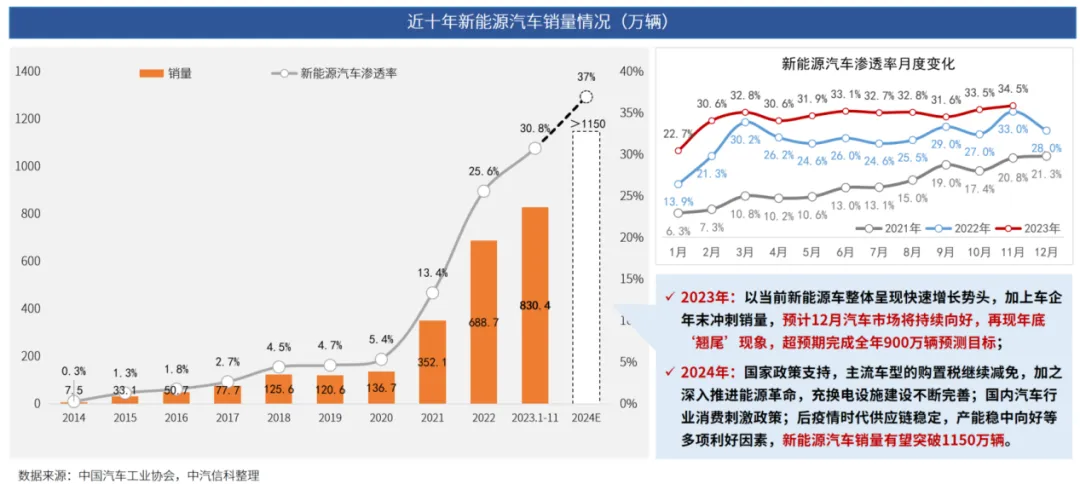 (1)新能源汽车将有望在2024年进入“千万”辆时代
