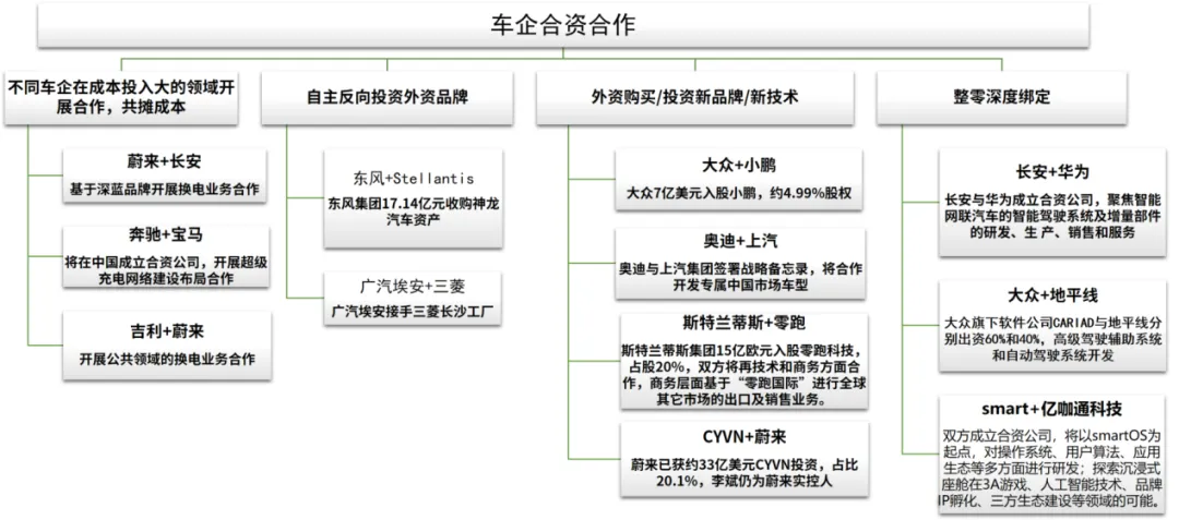 2023年,自主品牌之间、合资与自主品牌之间、产业链上下游之间的合作均呈现白热化态势,且出现了一些行业深度融合的新模式。未来,相同业态、不同业态合作方之间开展优势互补、资源整合,将是双方共同抵减成本、增强竞争力的一种新方式。