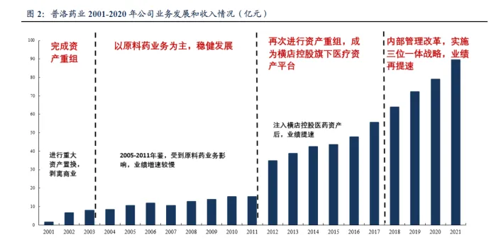 图9 普洛药业2001-2021年公司业务发展和收入情况(亿元)