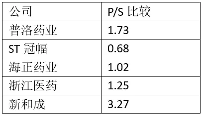 由于分母为销售额即主营业务收入,因此市销率也是偏低较好,普洛药业大概位于行业中间值,处在合理的1.7范围,因此具有较好的投资价值和增长潜力。