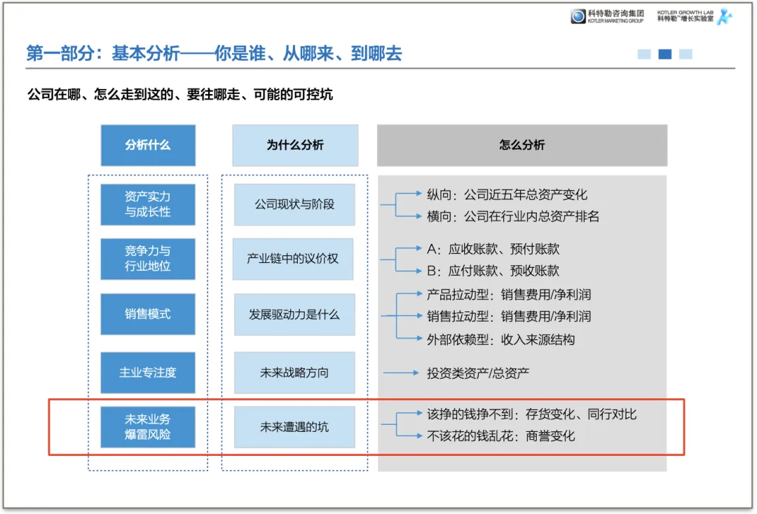 本次只挑选公司现状中与营销战略相关的分析维度,不是全面分析,全面分析的维度会更多,比如财务分析、管理分析等等;