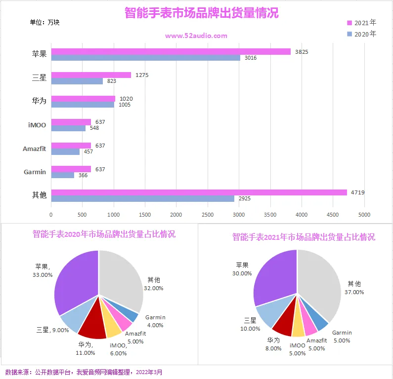更多关于2022年智能手表市场规模、发展趋势的详细内容,请查看我爱音频网原创内容2022智能手表市场规模、发展趋势全面解读!2021销量破亿!