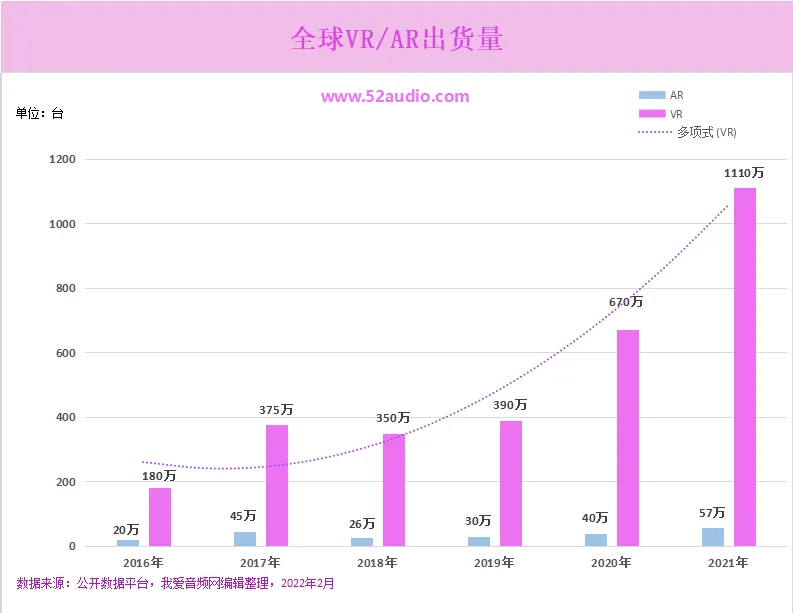 -AR全球2021年出货量57万台,同比增长42.5%。