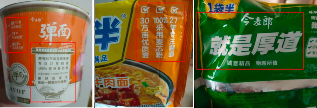 今麦郎将行业内大部分畅销品类作为共性,以一桶半、一袋半的特性,去与行业招牌红烧牛肉面,包括老坛酸菜牛肉面、乌冬面、汤面等进行竞争,通过优质面粉、加量、加蛋、低价等方式夯实今麦郎优势。